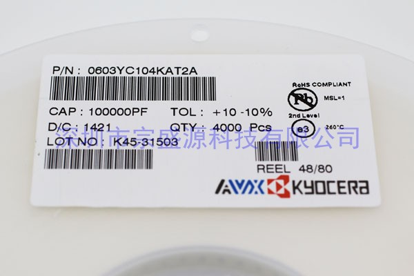 產品名稱:AVX陶瓷電容 0603 16V 0.1UF 0603YC104KAT2A
